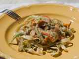 - Sahne, Salz, Pfeffer, frisch geriebenen Parmesan und Petersilie hinzufügen. Aufkochen lassen und bei schwacher Hitze unter Rühren etwas einkochen lassen, bis die Sauce dicklich wird.
