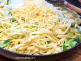 - Die Nudeln in reichlich Salzwasser al dente kochen. In ein Sieb schütten und kurz abtropfen lassen.