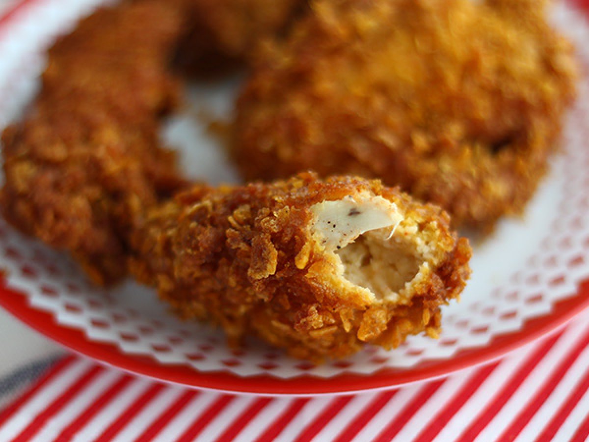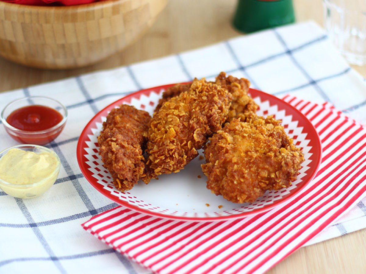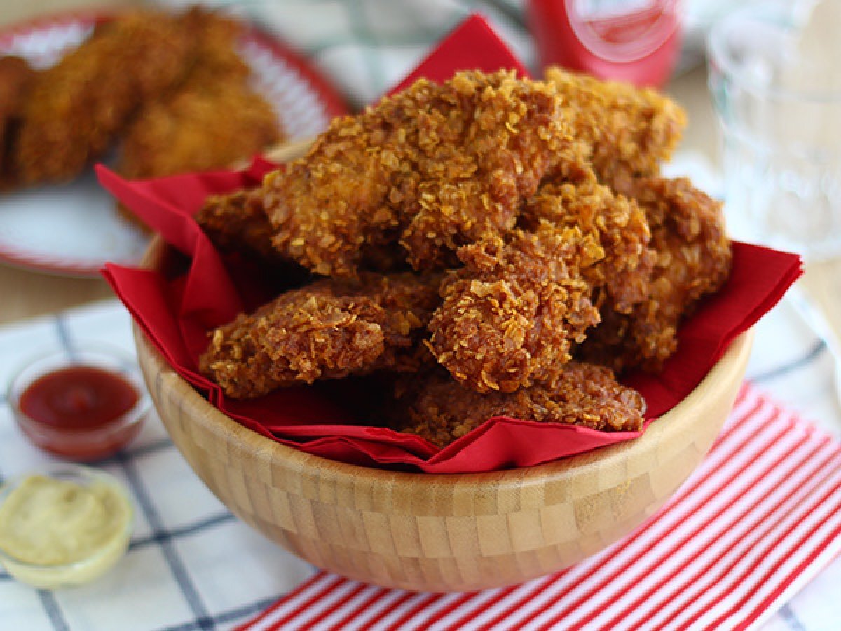 Haben Sie Hühnerbrust und Cornflakes? Perfekt! Mit etwas Milch, Eiern und Mehl können Sie vor Freude über unser Hähnchenrezept knuspern!