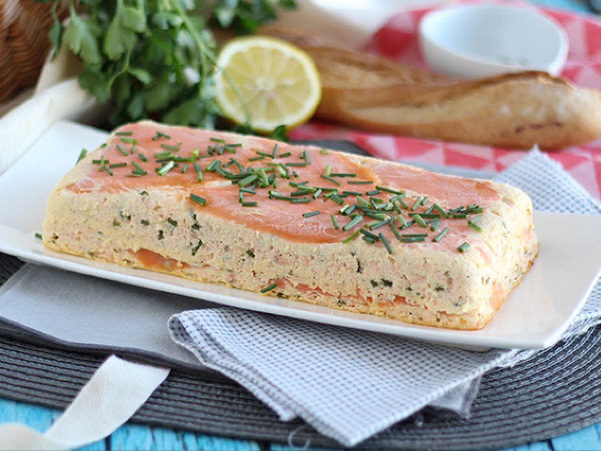 Terrine mit frischem lachs und räucherlachs
