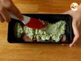 Den Boden einer Kuchenform mit Räucherlachs auslegen und dann mit einer Schicht der Zucchinimischung bedecken.