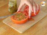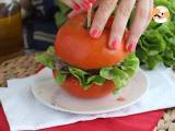 Der Tomaten-Burger ist bereits glutenfrei, da das Brot durch eine große Tomate ersetzt wird. Achten Sie darauf, auch glutenfreie Zutaten für das Steak und die Pesto-Sauce zu verwenden.