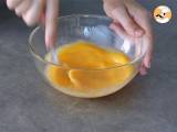 Gießen Sie die Mischung in eine gefettete Backform. Im Ofen bei 190 °C 25 Minuten lang backen. Überprüfen Sie die Backzeit.