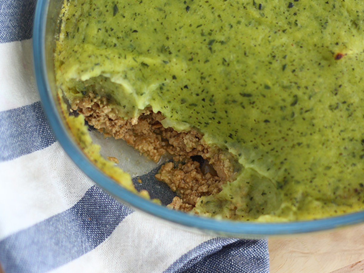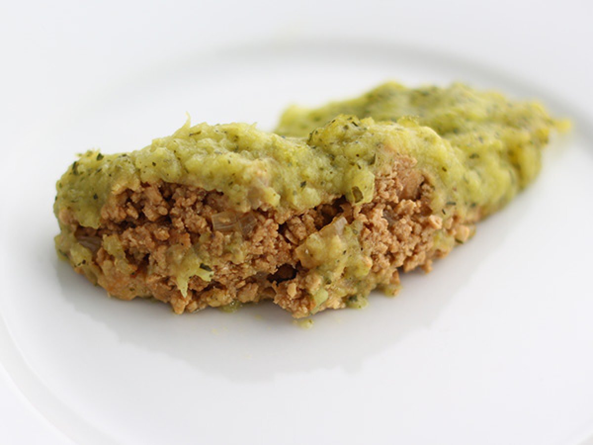 Veganer zucchini-tofu-hackfleisch-parmentier