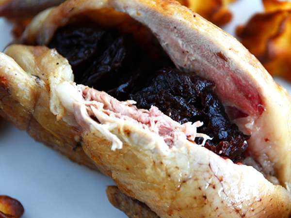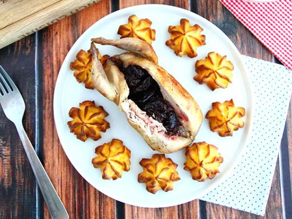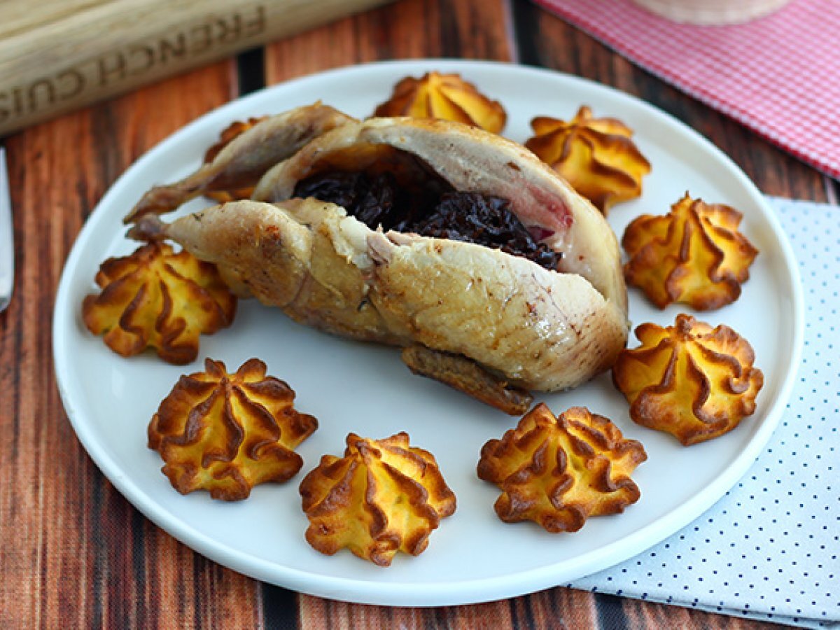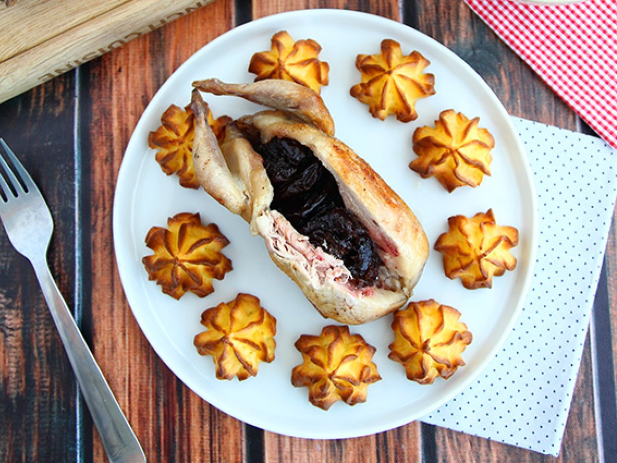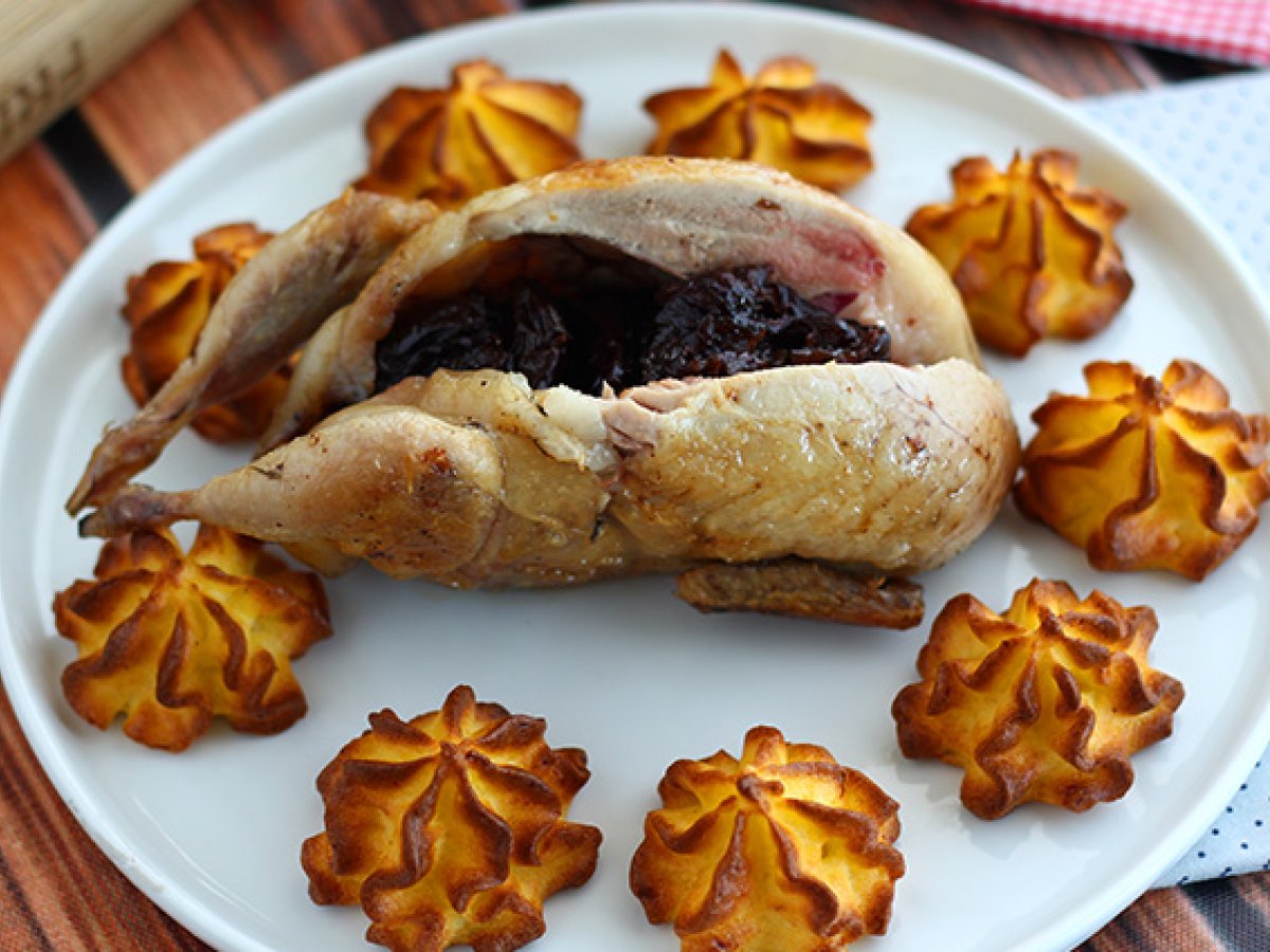 Füllen Sie die Wachteln mit den Backpflaumen.
