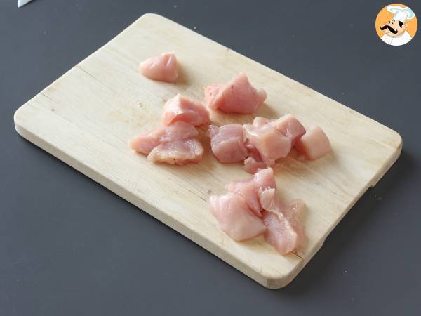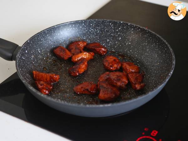 Anbraten, bis die Stücke vollständig gegart sind. Das Hähnchen beiseite stellen.