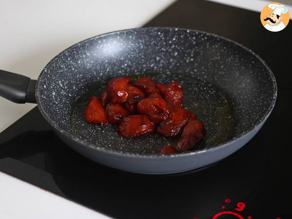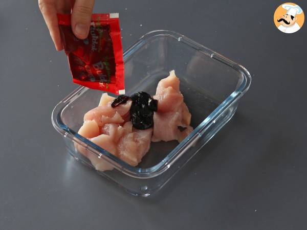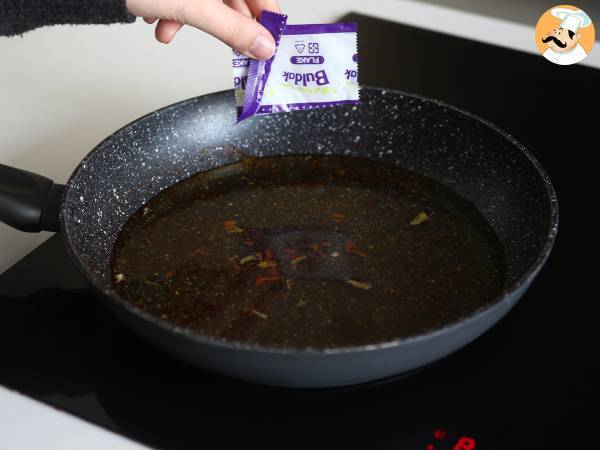 Fügen Sie den Rest des roten Beutels (die Chilisauce) hinzu und mischen Sie alles.