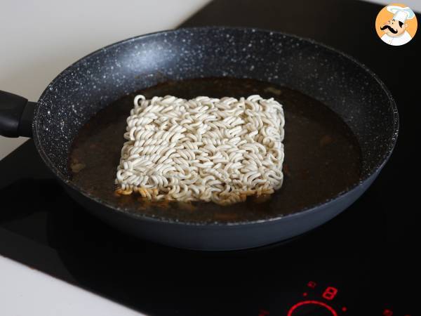Die Nudeln 1 Minute lang kochen und dann den Nudelblock umdrehen.