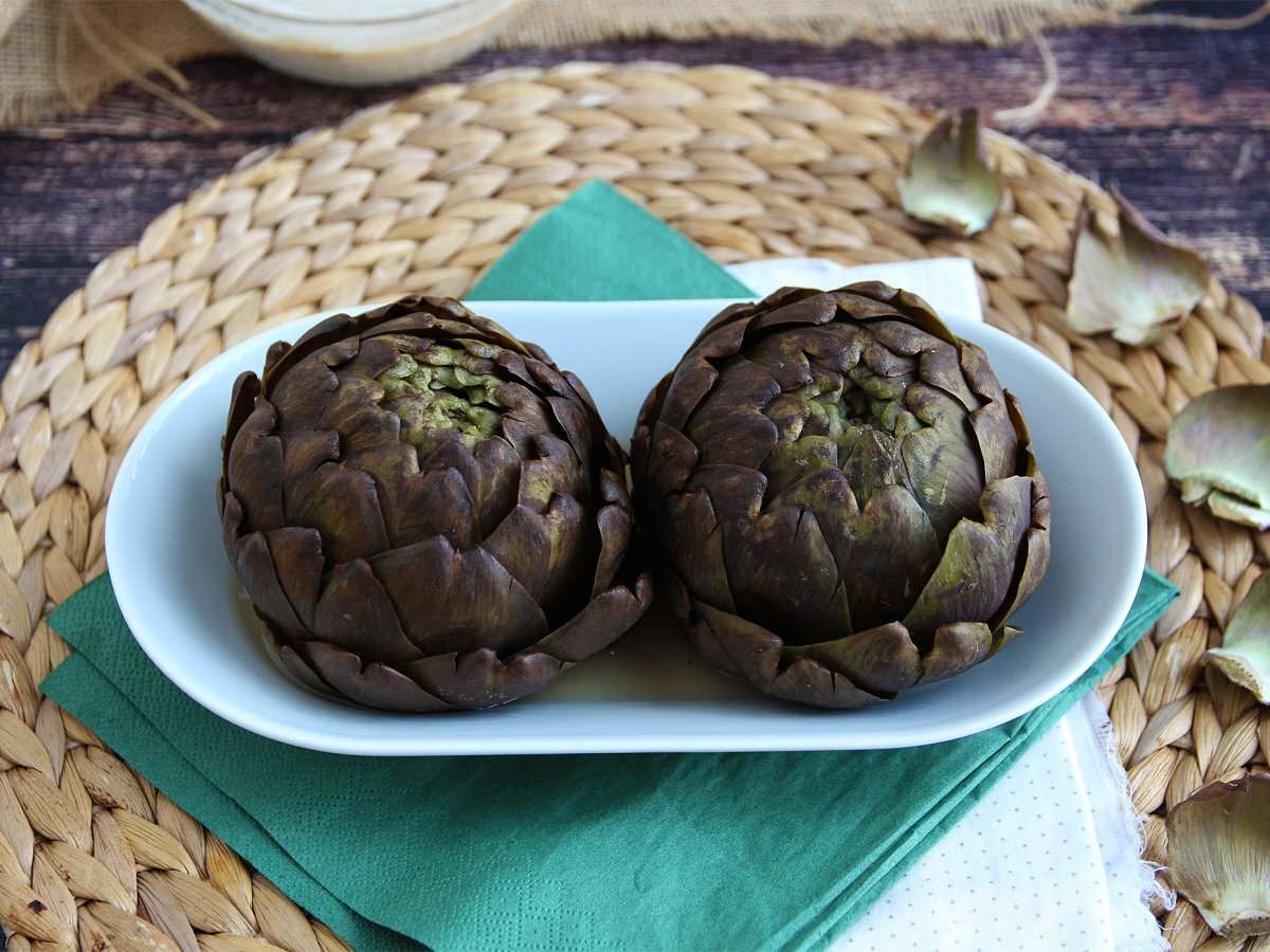 - Tauchen Sie die Artischocken kopfüber in einen Topf mit kochendem Salzwasser und achten Sie darauf, dass sie gut verschlossen sind, damit sie sich beim Kochen nicht umdrehen.