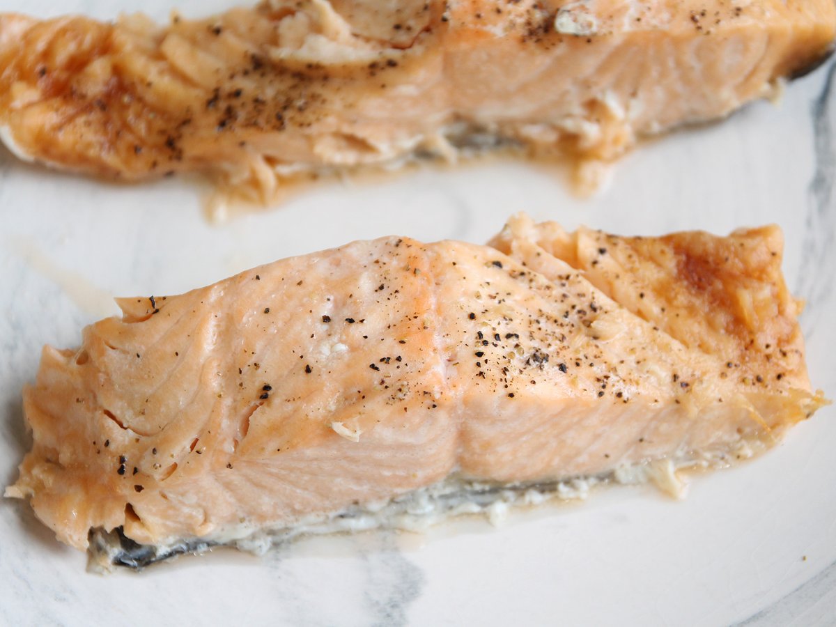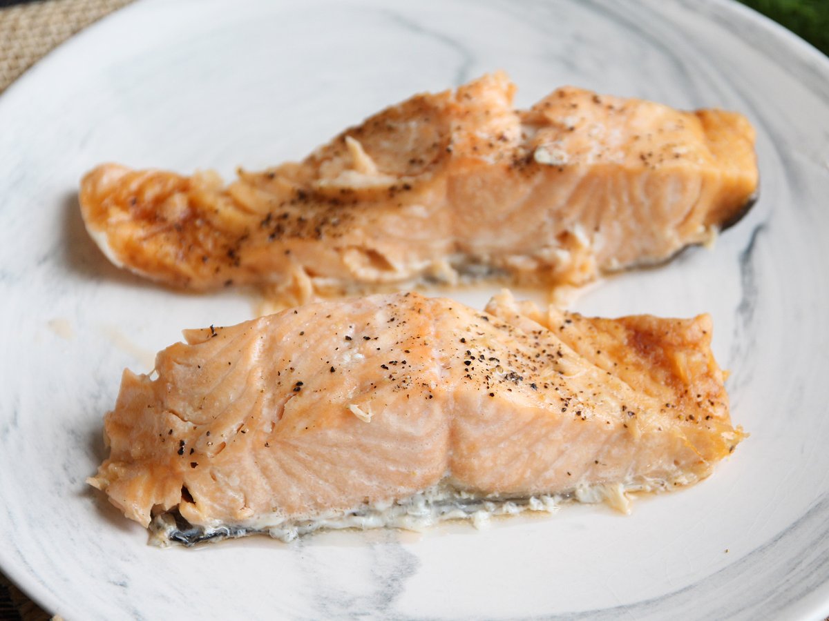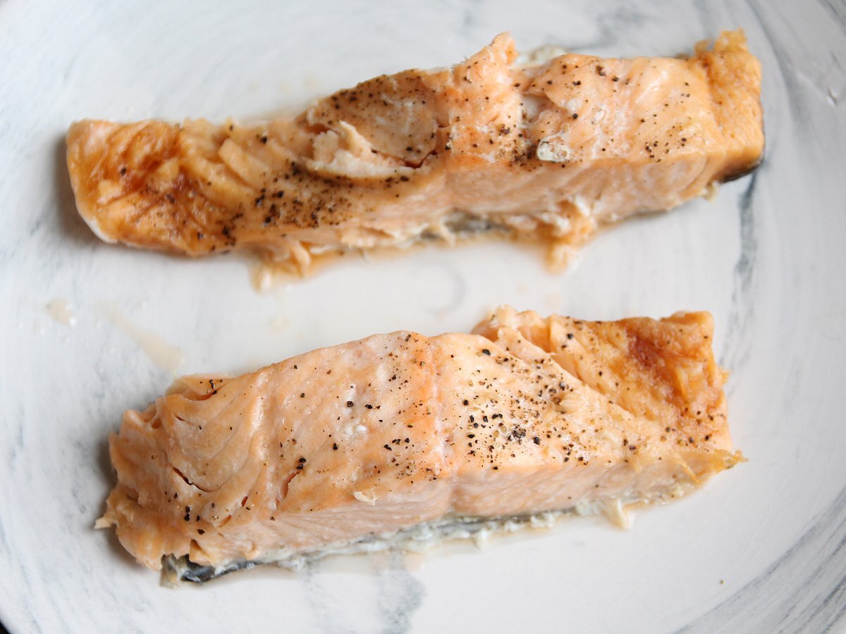 - Legen Sie Ihre Lachsfilets in einen mikrowellengeeigneten tiefen Teller.