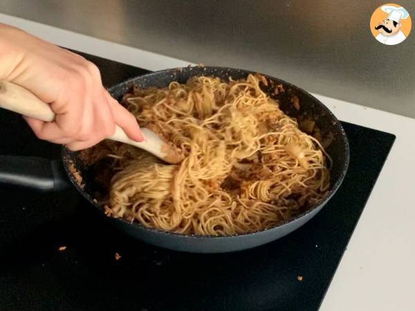 Wok mit chinesischen nudeln (gemüse und texturiertes sojaprotein)