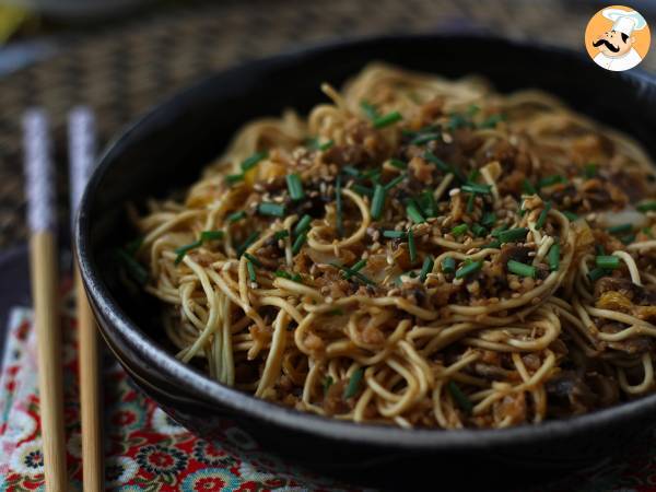 Für ein Gericht, das einfach zuzubereiten und reich an Aromen ist, versuchen Sie es mit einem Wok mit chinesischen Nudeln! Hier können Sie eine vegetarische Beilage probieren, die mit kleinem Gemüse und texturiertem Sojaprotein hergestellt wird. Und wenn Sie diese Zutat noch nie probiert haben, ist das ein guter Grund, neugierig zu sein und diese Zubereitung auszuprobieren ;-)