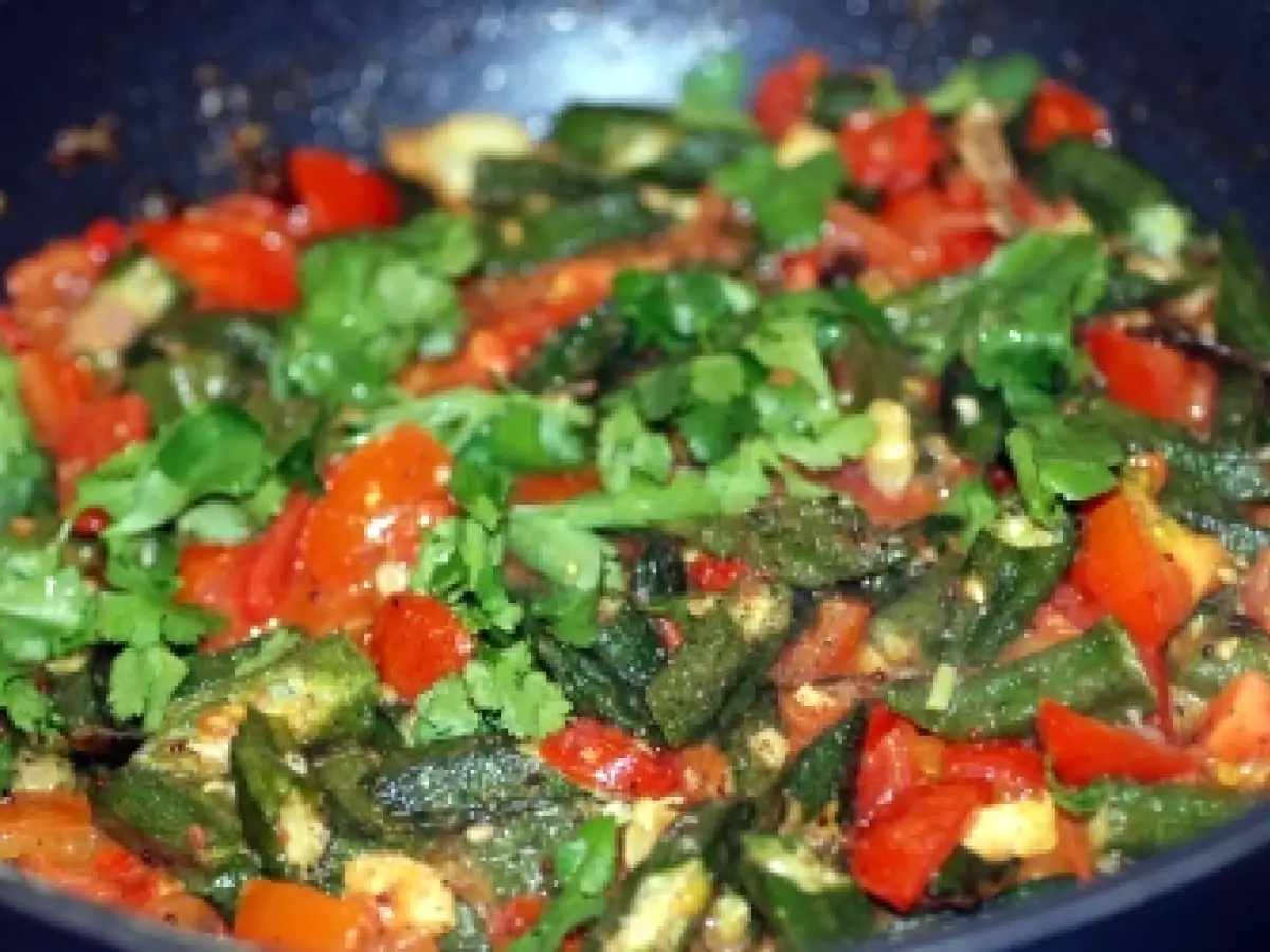 Würzig gebratene okraschoten mit tomaten und ingwer