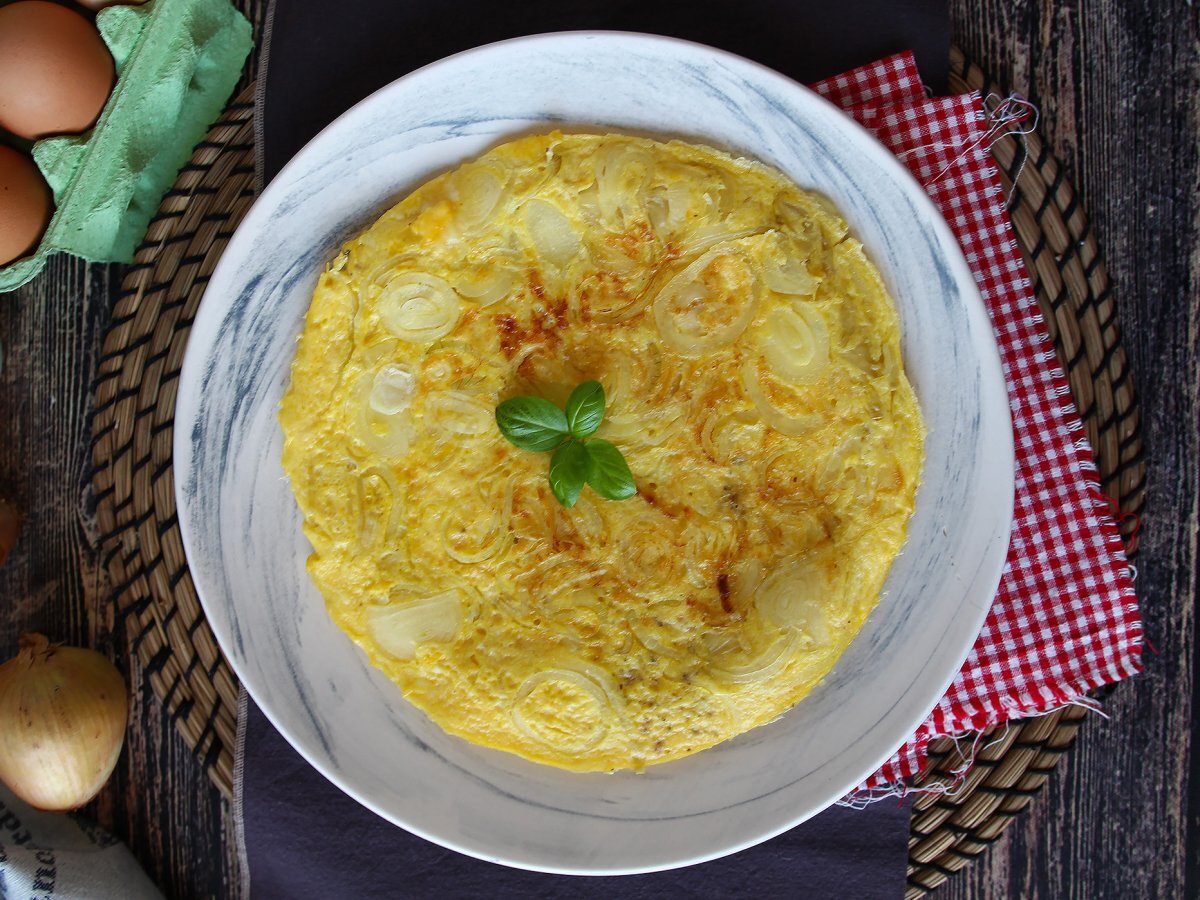 Zwiebel-omelett, das leckere und einfach zuzubereitende rezept