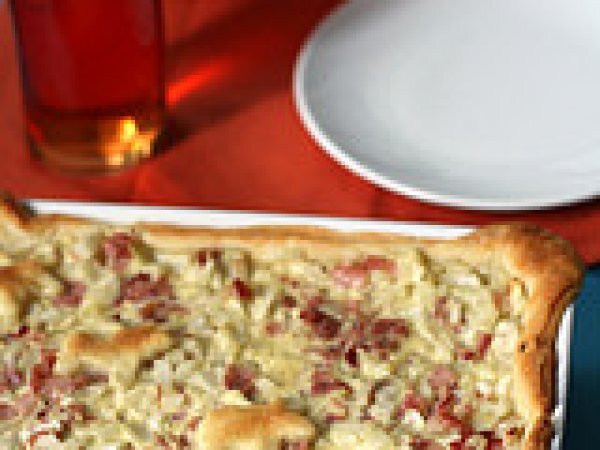 - In der Zwischenzeit in einer Pfanne mit etwas Schinken und Zwiebel glasig kann fett sein.