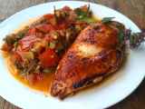 Zutaten: 1 Huhn 400g kleine Strauchtomaten 1 großes Bund Steilmangold 1 mittelgroße Zwiebel 2 Knoblauchzehen 2 Esslöffel Honig einige Zweige frischen...