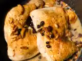 Zutaten: 4 Teile Huhn eine Hand voll Mandeln, geschält ein Spritzer weißen Essig 1 Glas Weißwein 4 Knoblauchzehe 2 Hand voll Weintrauben etwas Olivenöl...