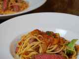 Eingemachtes kalbfleisch mit eierscheiben und kapern