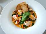 Zutaten: für Winzerteig nach dem Rezept von Barbara: 40 ml Olivenöl 40 ml Weißwein 100 g Dinkelmehl 1 Prise Salz für Gemüse: Karotten 300g Von 1 essloffel...