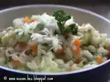 Zutaten: 1 Zitrone 1 Avocado 2 Karotten 1 kl. Zwiebel 1 essloffel Butter 150 g Risottoreis 500 ml Gemüsebrühe 1/2 Bund frische Petersilie 40 g frisch...