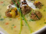 Joghurtsuppe mit kichererbsen und hackfleisch