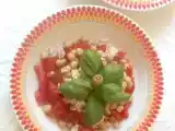 Zutaten: 2-3 grosse reife Fleischtomaten (oder mit - Coctailtomaten gemischt) 1 kleine Dose Kichererbsen 1 kleine Dose Thunfisch Eine Hand voll grüne...