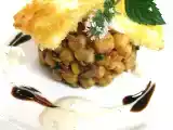 Zutaten: Getrocknete Kichererbsen 1 Zucchini 1 Aubergine 100 g getrocknete Tomaten Ziegenkäse Eier Panko Mehl 200 ml Joghurt mit Feigen Frische Balsamico...