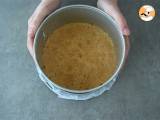 Die Petit Beurre mixen und mit der geschmolzenen Butter vermischen. Die Mischung auf den Boden der mit Backpapier ausgelegten und mit Rhodoid umwickelten Form geben. Gut festdrücken und 30 Minuten kühl stellen.