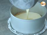 Die Mischung unter gelegentlichem Rühren eindicken lassen. Die Mischung auf den Biskuitboden gießen und 1 Stunde kalt stellen.