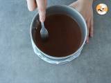 Sie können Ihren Kuchen aus der Form nehmen, indem Sie vorsichtig die Rondo und das Backpapier abziehen. Wir haben ihn mit geriebener Schokolade verziert!