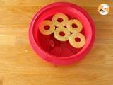 Gießen Sie Karamell in den Boden der Butterform. Legen Sie Ananasscheiben darauf.
