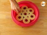 Legen Sie eine Kirsche in jedes Loch der Ananasscheibe (optional).