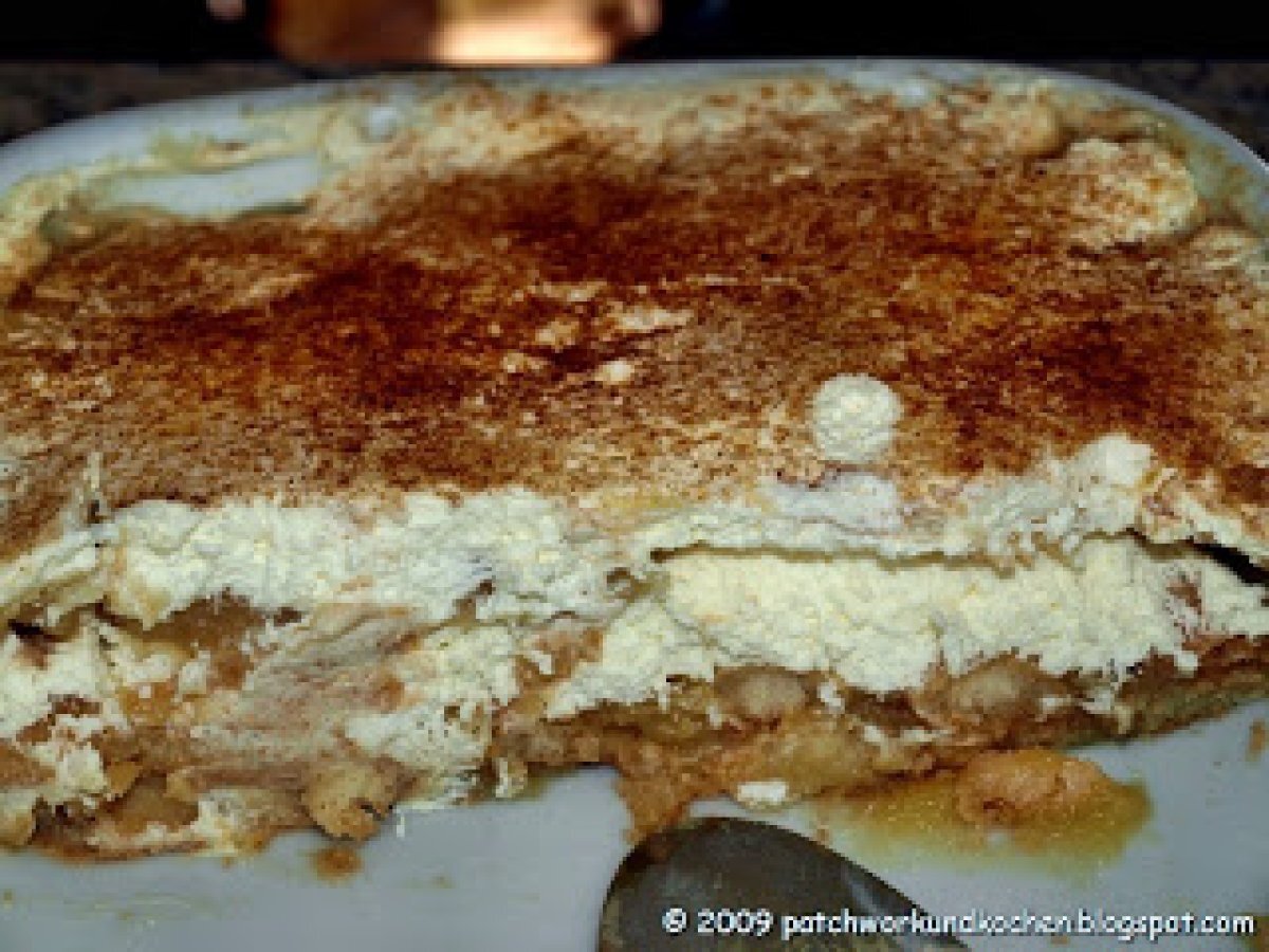 - Lady Finger, Apfelmus. Letzte Schicht Schlagsahne.