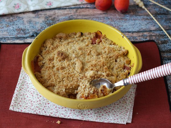 Aprikosen-crumble, das super wohlig schmelzende und knusprige dessert