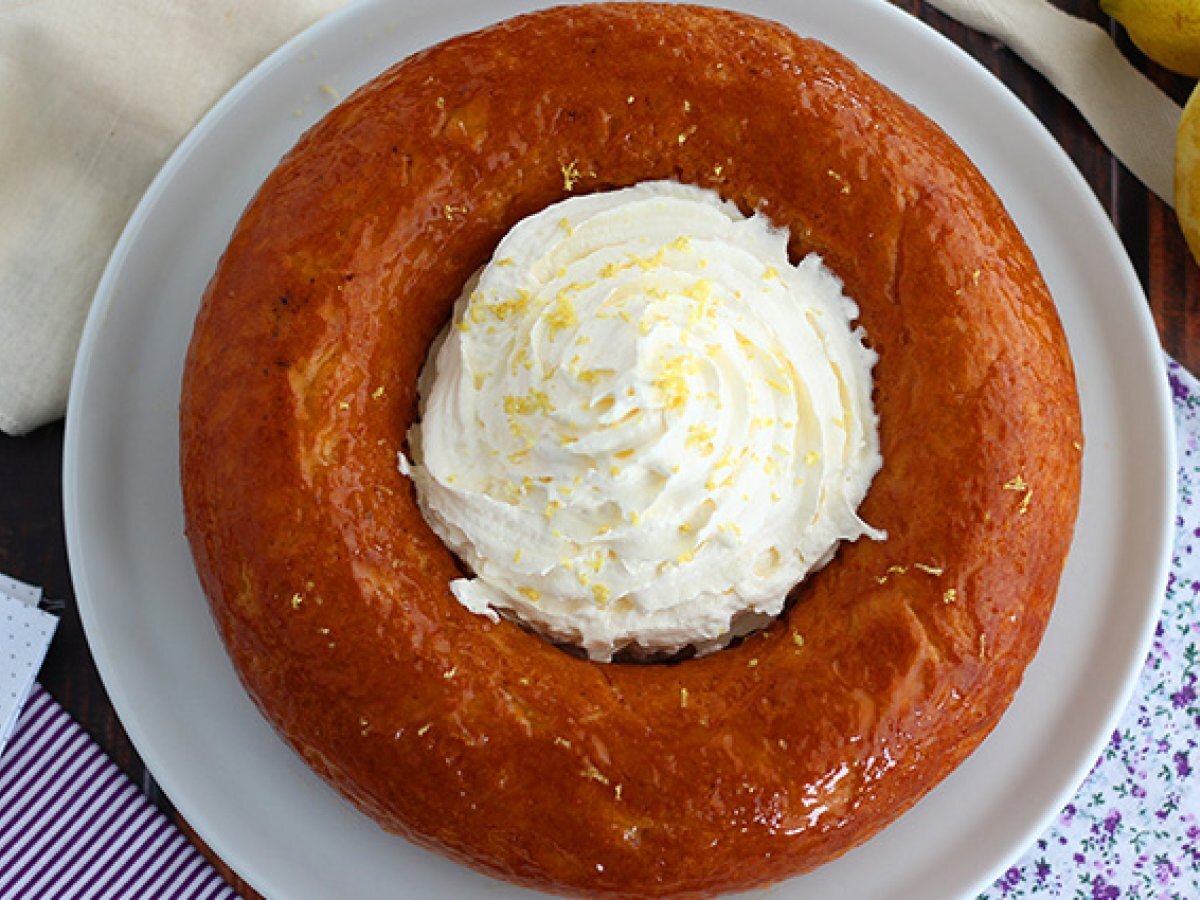 Für noch mehr Genuss können Sie ruhig Schlagsahne in die Mitte des Baba geben, die Sie mit Zitronenzesten bestreuen können.