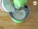 Schlagen, bis das Baiser beim Anheben des Schneebesens Spitzen bildet.