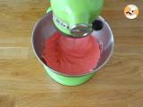 Einen Esslöffel des weißen Baisers abnehmen und den Rest des Baisers rot einfärben.