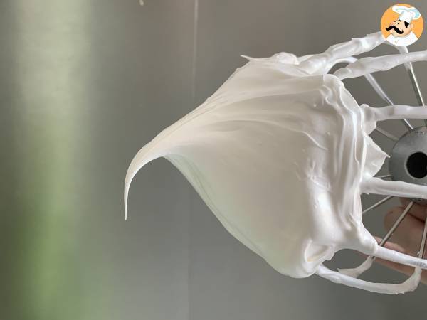 Wenn der gesamte Zucker eingearbeitet ist, lassen Sie die Küchenmaschine etwa 5 Minuten lang auf höchster Stufe laufen. Das Baiser sollte glatt, cremig und mit dem berühmten Vogelschnabel sein.