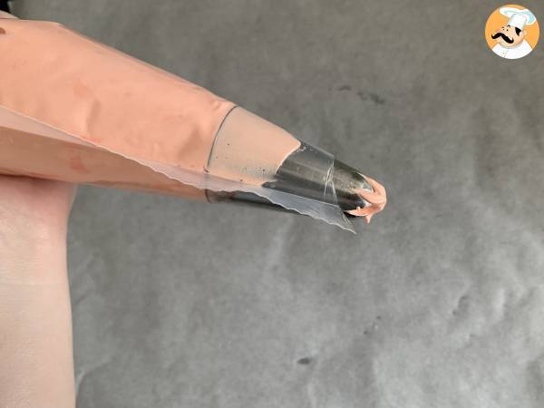 In einen Spritzbeutel mit einer geriffelten Tülle die rosafarbene Masse geben.
