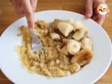 Die Bananen auf einem Teller in Stücke schneiden und mit einer Gabel zerdrücken.