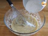 Die Mischung in eine Salatschüssel geben, dann die Pflanzenmilch, das Backpulver, das Natron, das Olivenöl und den Apfelessig hinzufügen und vermischen. (Durch die Zugabe des Apfelessigs aktivieren Sie das Natron, das einen Schaum bildet :-) )