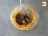 Den Backofen auf 180°C vorheizen. Die Eier mit dem Zucker verrühren. Die weiche Butter und die gemahlenen Mandeln hinzufügen. Geschmolzene Schokolade unterrühren.