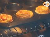 Legen Sie die Apfelrosen in die Vertiefungen von Muffinförmchen und backen Sie sie 20 Minuten bei 180 °C.