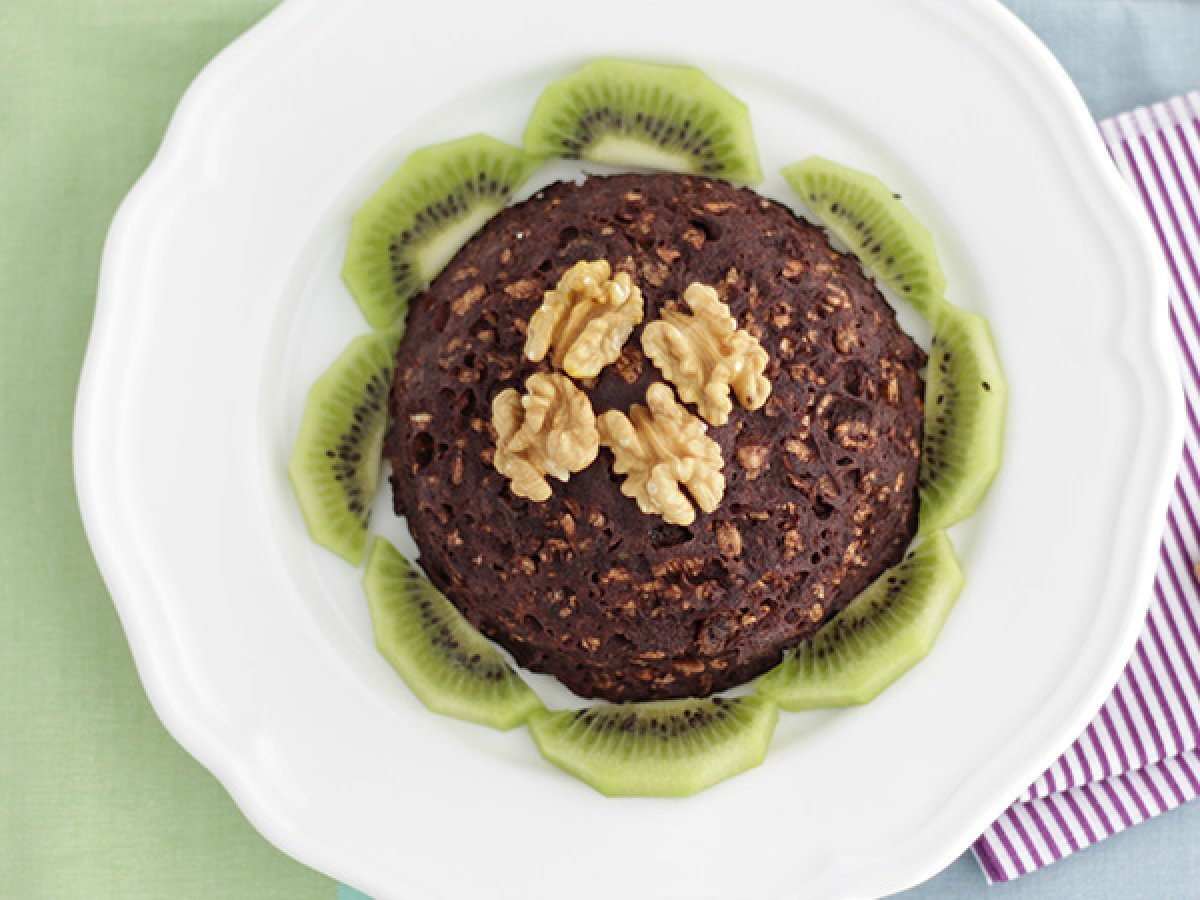 Aus der Form nehmen und nach Lust und Laune dekorieren! Hier haben wir Kiwi und Walnüsse hinzugefügt.