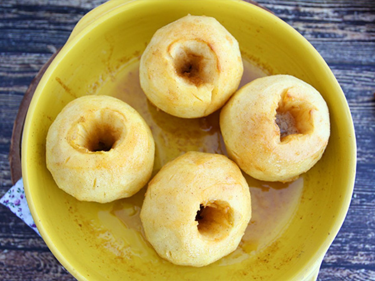 Äpfel: Wenn es sich um Bio-Äpfel handelt, müssen sie nicht geschält werden. Sie können die Oberseite des Apfels abschneiden (wie in einem Rezept für gefüllte Tomaten), ihn aushöhlen und den Hut wieder aufsetzen, bevor Sie ihn kochen. Dies ergibt eine schöne Präsentation. Denken Sie daran, sie an einigen Stellen mit einer Gabel einzustechen, damit sie beim Kochen nicht platzen.