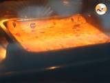 Gießen Sie die Mischung in eine gefettete Backform und stellen Sie sie 30 Minuten bei 180 °C in den Ofen.