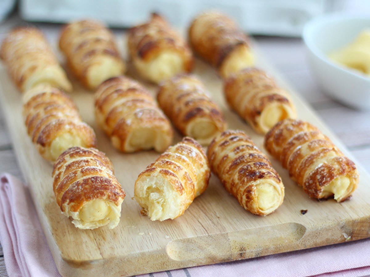 Sie kennen sicherlich die berühmten sizilianischen Cannoli! Aber wussten Sie, dass es auch andere gibt? Wir stellen Ihnen die "Cannoli alla crema pasticcera" (übersetzt: "Cannoli mit Konditorcreme") vor. Wie Sie vielleicht schon bemerkt haben, ist eine mit Vanille aromatisierte Creme mit von der Partie! Dazu gibt es einen Blätterteig und das war's dann auch schon! Ein Rezept made in Italy, das nur wenige Zutaten benötigt, aber dennoch für ein köstliches Geschmackserlebnis sorgt.