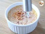 Nach dem Abkühlen die Cremes mit braunem Zucker bestreuen und die obere Seite mit einem Flambiergerät (oder im „Grill“-Modus des Ofens) flambieren.