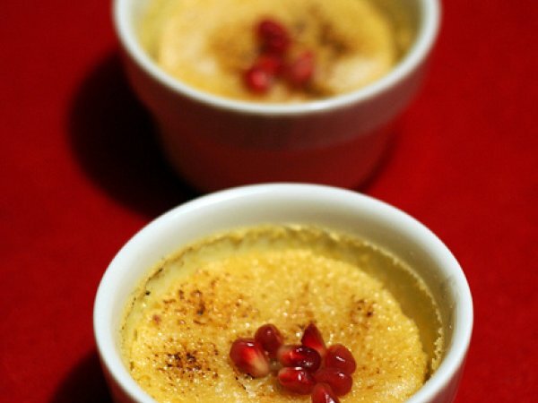 - Granatapfelkernen auf 4 ofenfeste Förmchen {A} 125 ml, das Ei-Sahne-Mischung.