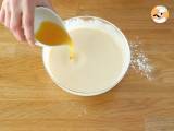 Zum Schluss den Orangensaft dazugeben, verrühren. Decken Sie die Schüssel ab und lassen Sie sie 1 Stunde lang stehen.